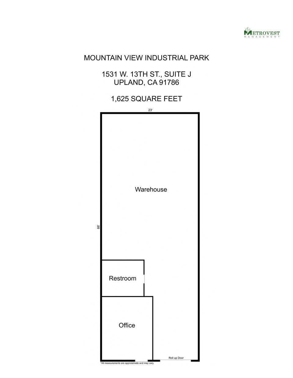 Mountain View Industrial Park is located conveniently just east from the corner of Benson and 13th Street in the City of Upland, California. The park is located in a quality, secure location next to the Upland Police station. Newer concrete tilt-up buildings, individual tenant signage, and one or more air-conditioned offices in each unit. Some of the common uses for these space are office, research and development, distribution, light manufacturing, wholesale, and storage. Units sized from 910 square feet to 4,000 square feet with private, clean restroom, large rear roll-up doors, and skylights in the warehouse. Near Cable Airport, easy access to the 10 and 210 freeways.